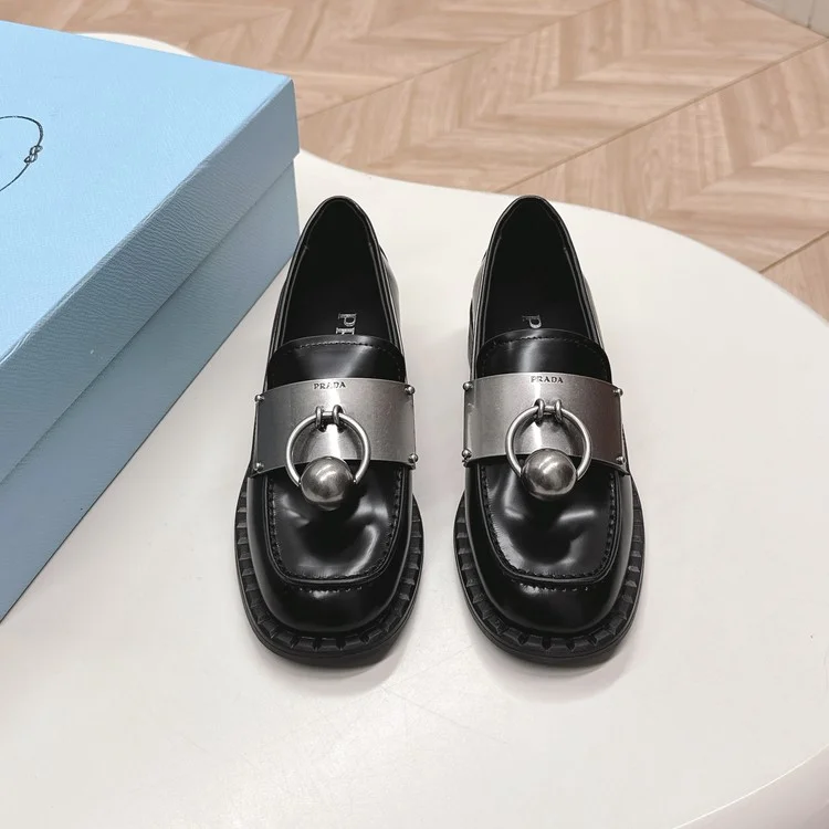 프라다 브러쉬드 레더 로퍼