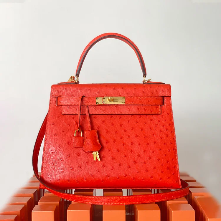 에르메스 켈리 28 셀리에 오스트리치 레드 골드 하드웨어 (100% HAND MADE)