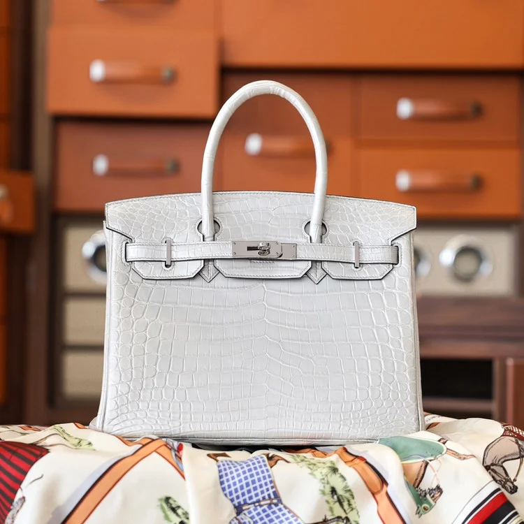에르메스 버킨 30 르투르네 크로커다일 화이트 팔라듐 하드웨어 (100% HAND MADE)