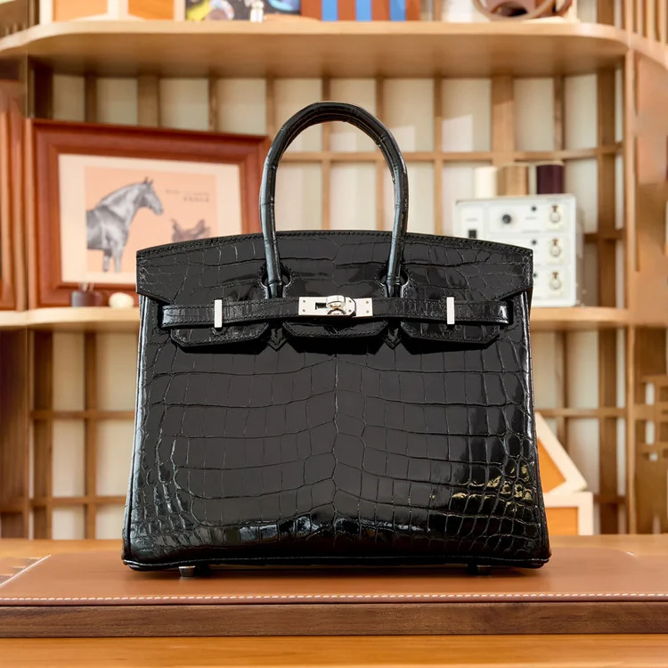 에르메스 버킨 25 르투르네 크로커다일 유광 블랙 실버 하드웨어 (100% HAND MADE)