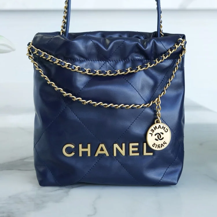 샤넬 22백 미니 샤이니 네이비 블루 금장
