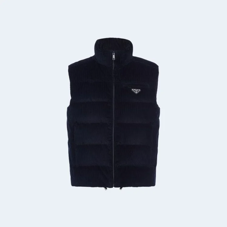 프라다 코듀로이 다운 패딩 베스트 블랙