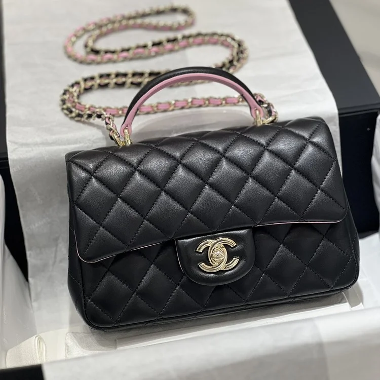 샤넬 핸들 미니 CF 플랩백 램스킨 블랙핑크