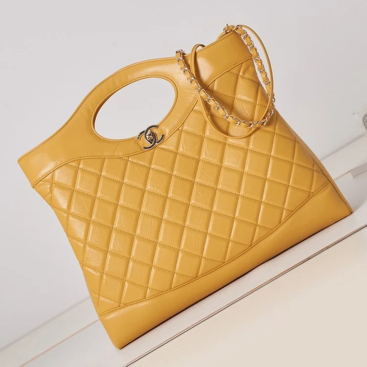 샤넬 31 라지 쇼핑백 토트백 옐로우 금장