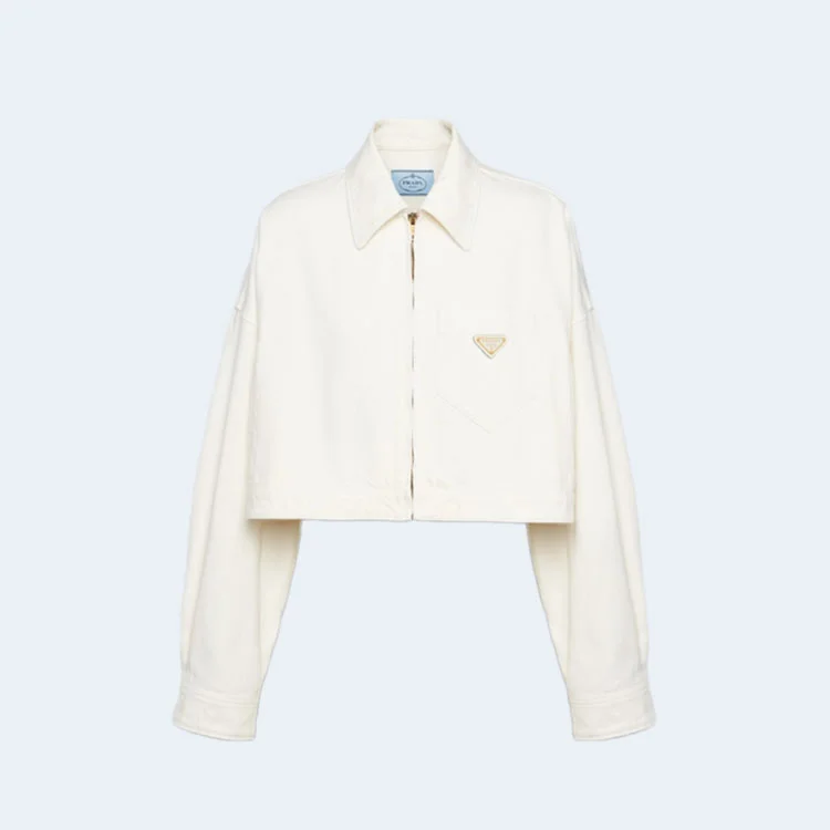 프라다 데님 블루종 재킷 화이트