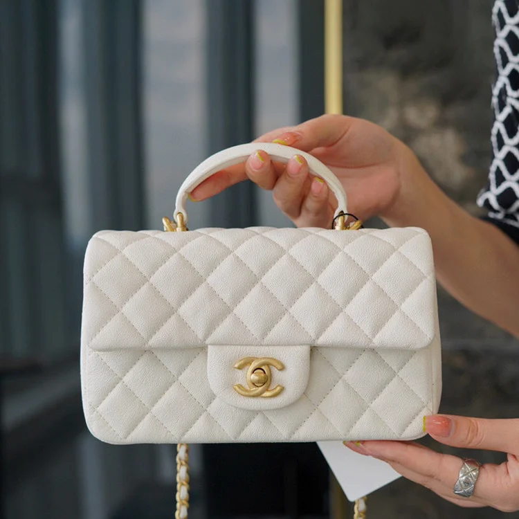 샤넬 클래식 뉴미니 탑핸들 플랩백 화이트 캐비어