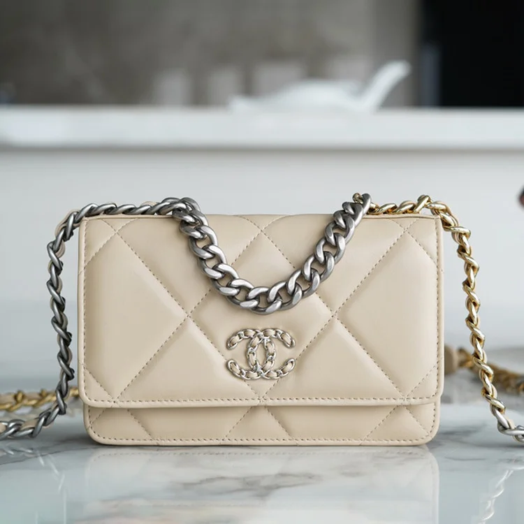 샤넬 19 WOC 턴락 램스킨 베이지 은장