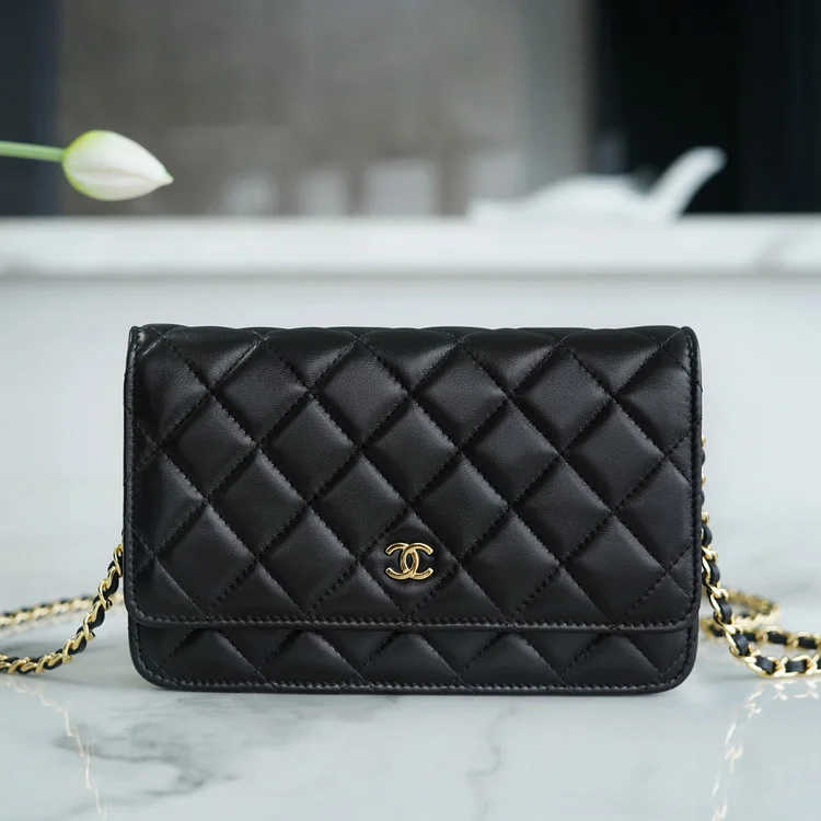 샤넬 클래식 WOC 블랙 금장 램스킨