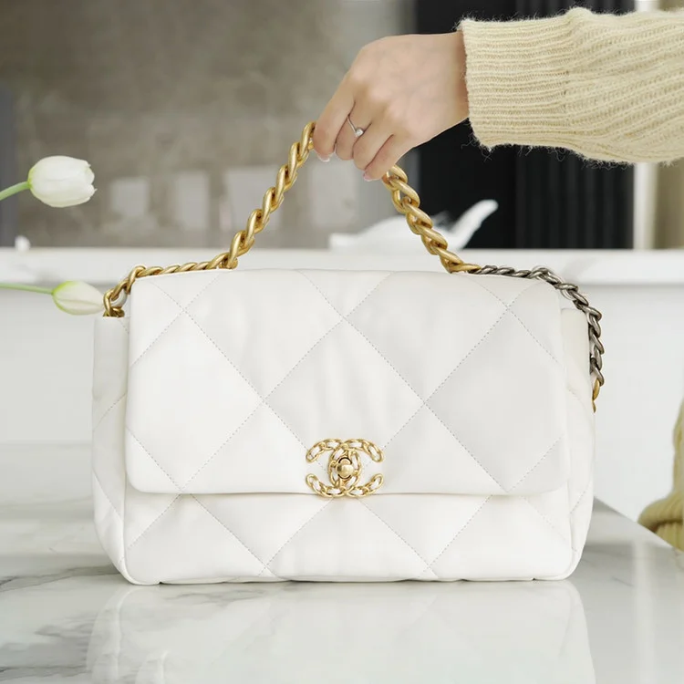 샤넬 19백 라지 골드 체인 램스킨 화이트