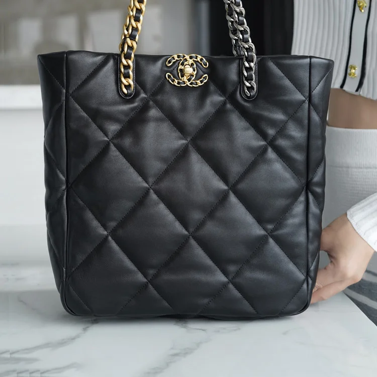 샤넬 19백 쇼핑 토트 미디엄 램스킨 블랙