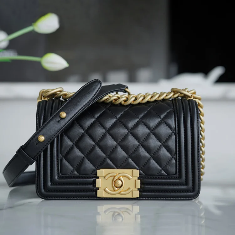 샤넬 보이백 스몰 블랙 금장 램스킨