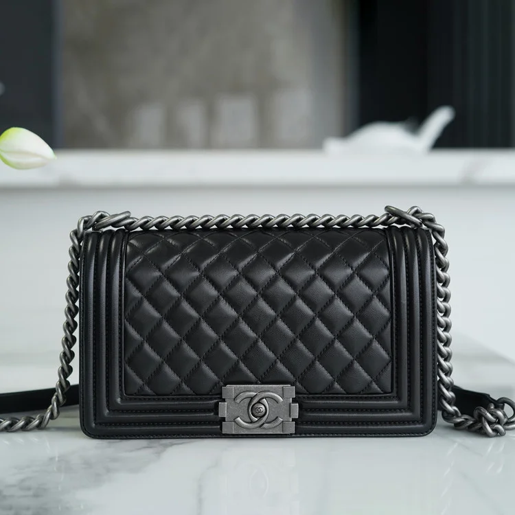 샤넬 보이백 미디엄 블랙 은장 램스킨
