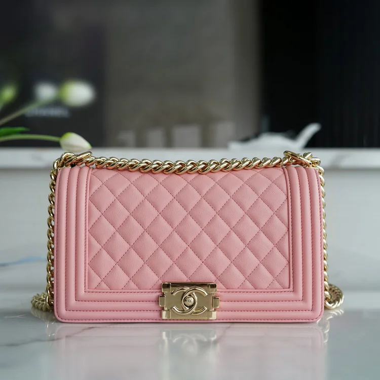샤넬 보이백 미디엄 핑크 금장