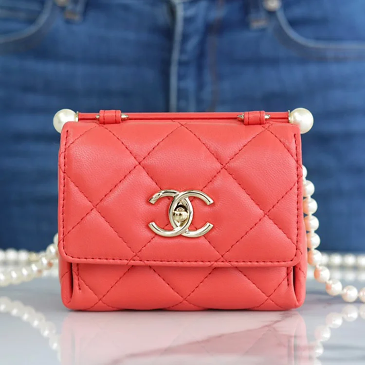 샤넬 24SS 진주 체인 미니백 램스킨 레드 AP4006