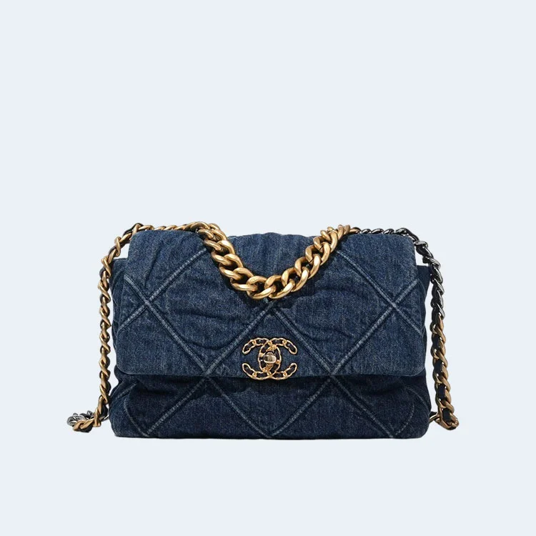 샤넬 19백 미디엄(스몰) 골드 체인 데님 블루