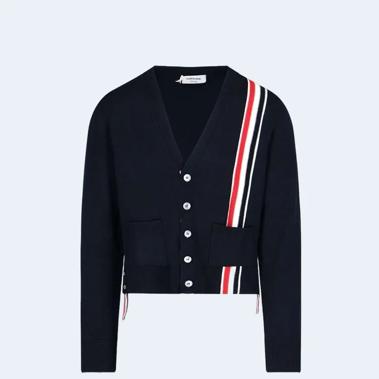 톰브라운 삼선 라인 네이비 니트 가디건