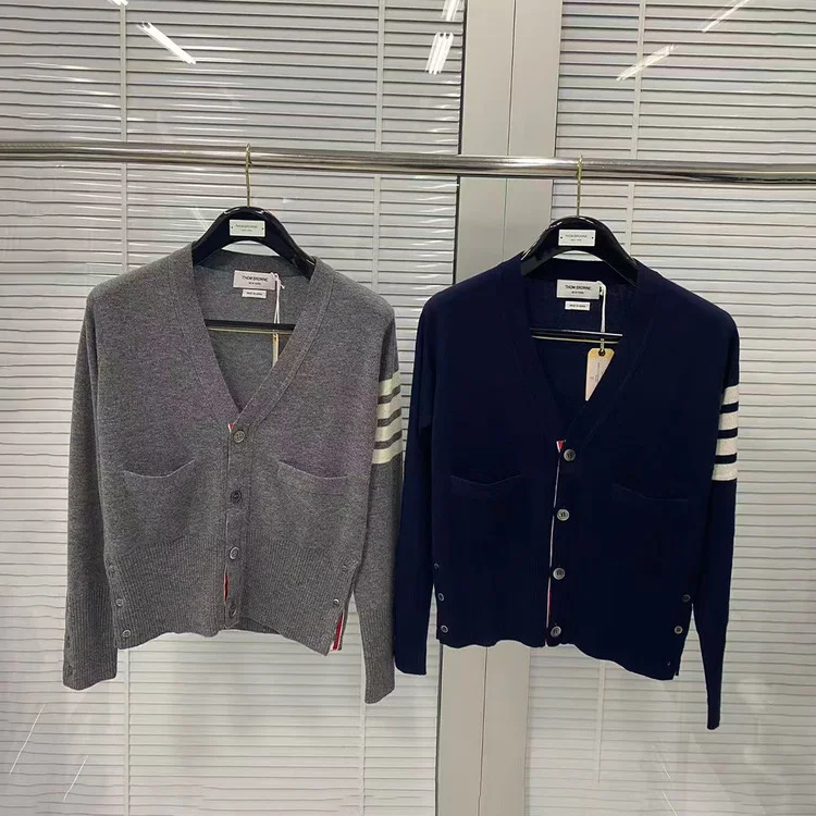 톰브라운 울 4바 스트라이프 밀라노 브이넥 가디건 (2color)