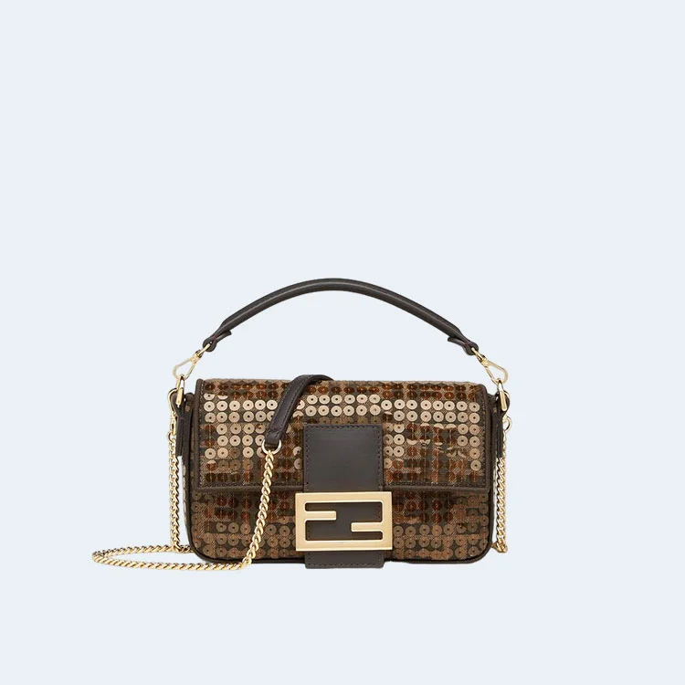 펜디 바게트 미니 FF 자카드 시퀸 패브릭 백