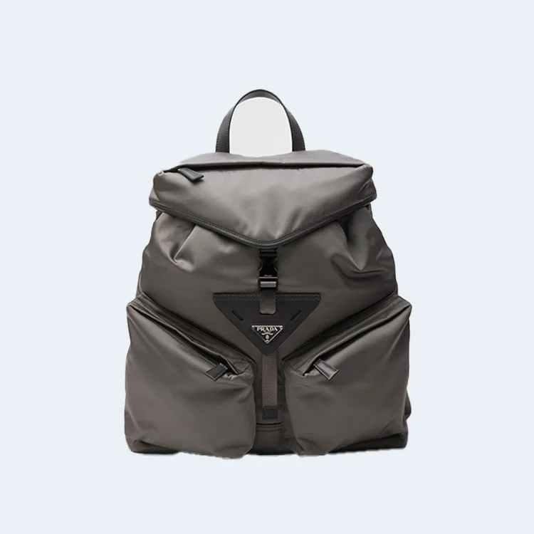 프라다 리나일론 레더 백팩 그레이