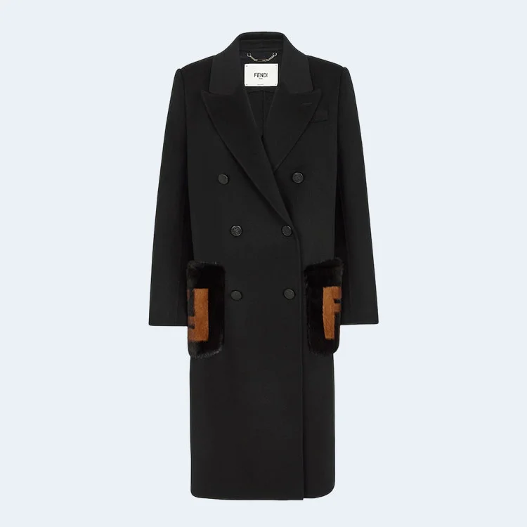 펜디 밍크 포켓 블랙 울 코트