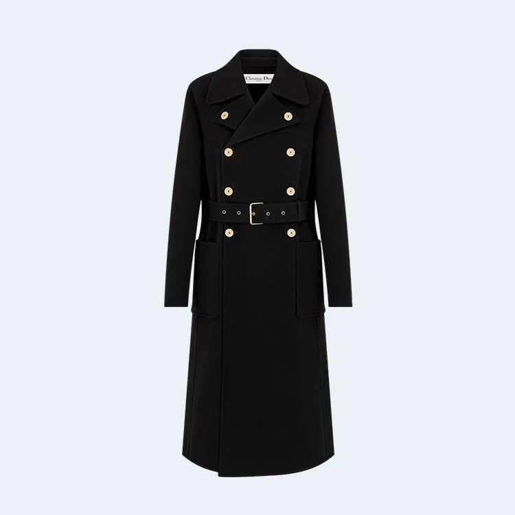 디올 울 캐시미어 벨트 블랙 코트