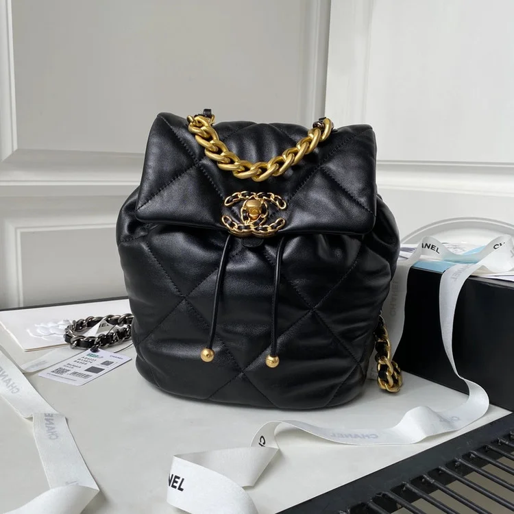 샤넬 19 백팩 샤이니 램스킨 블랙