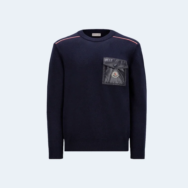 몽클레어 체스트 포켓 로고 패치 니트 네이비