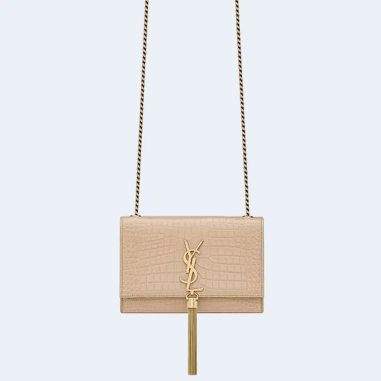 생로랑 크로커다일 케이트 스몰 태슬백 베이지 골드