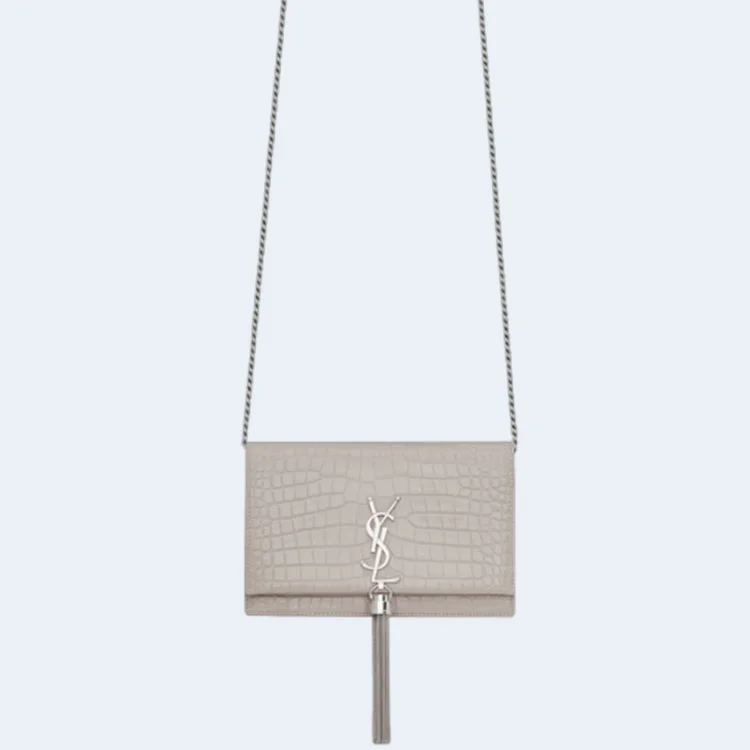 생로랑 크로커다일 케이트 스몰 태슬백 그레이 실버