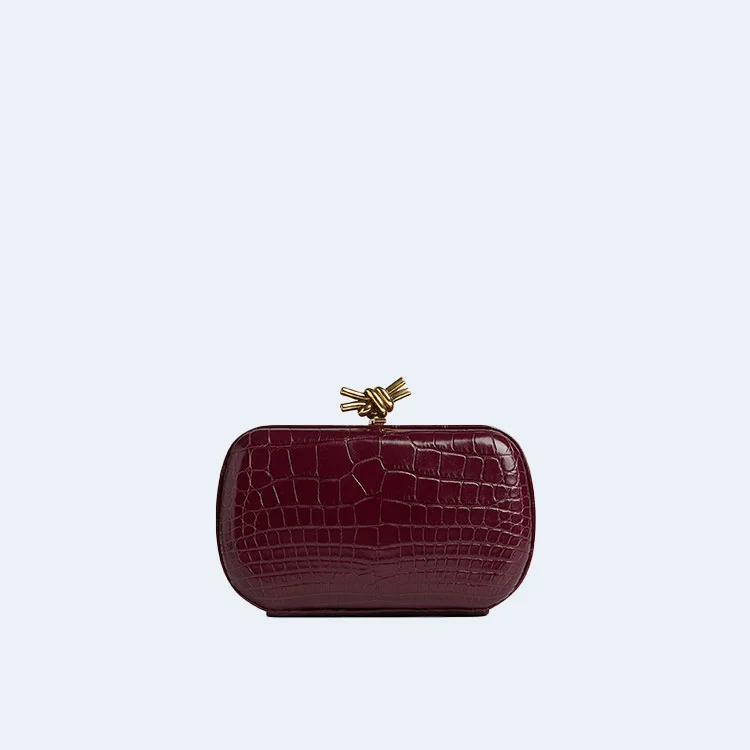 보테가 베네타 크로커다일 놋 클러치 버건디
