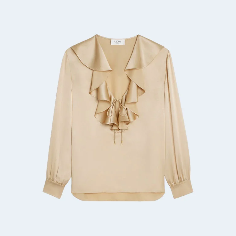 셀린느 샴페인 자보 칼라 세틴 블라우스