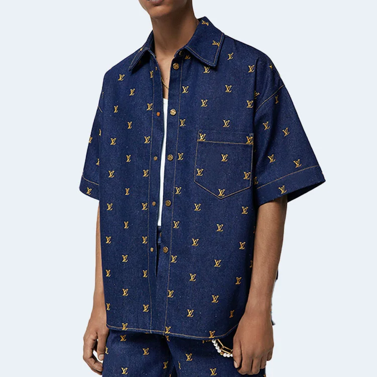 루이비통 엠브로이더리 시그니처 숏 슬리브 데님 셔츠 1AFJDU