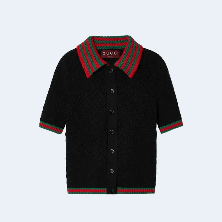 구찌 코튼 레이스 폴로 가디건 위드 웹 여성