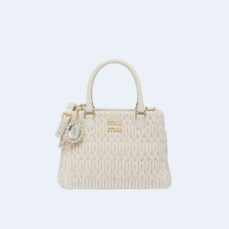 미우미우 크리스탈 클로케 나파 가죽 핸드백 화이트