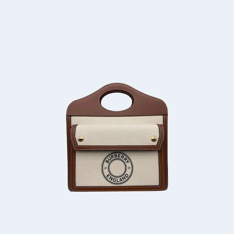 버버리 포켓 투톤 미니 캔버스 레더 토트백