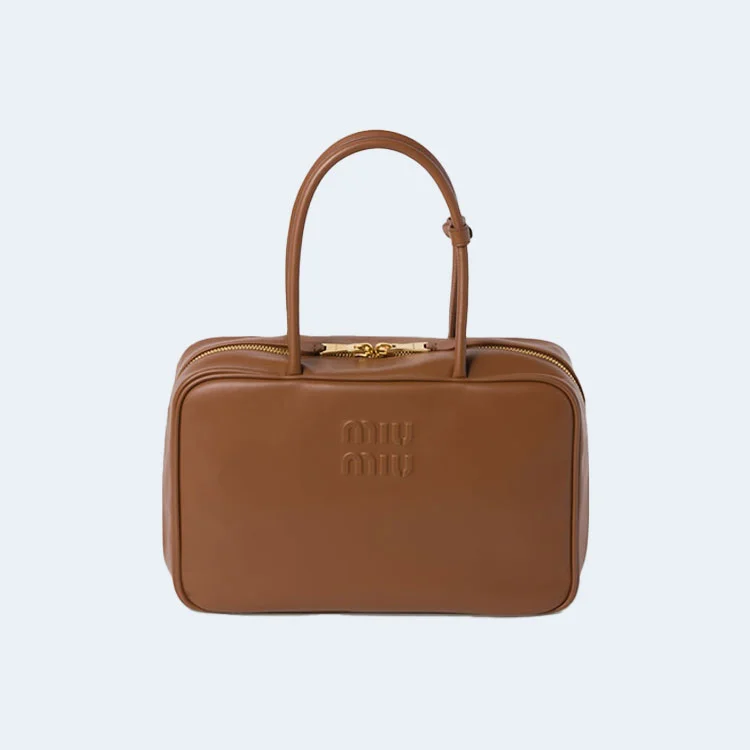 미우미우 가죽 탑 핸들 숄더백 브라운