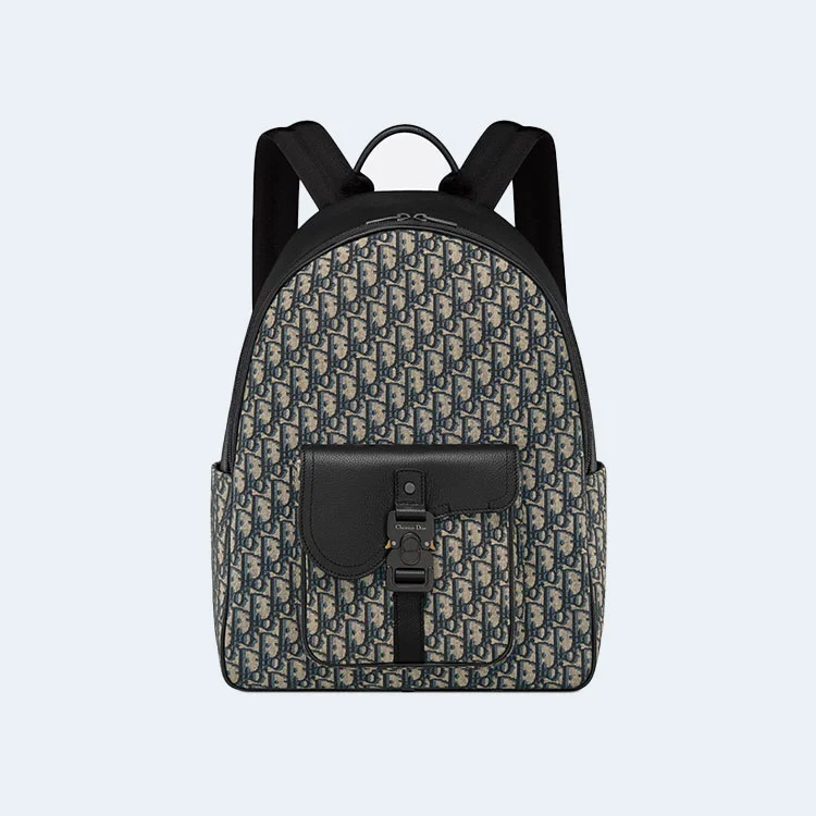 디올 오블리크 자카드 새들 지퍼 백팩 베이지