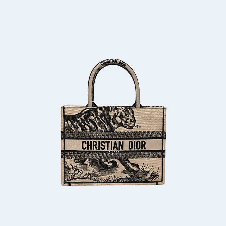 디올 타이거 캔버스 북 토트 백 브라운