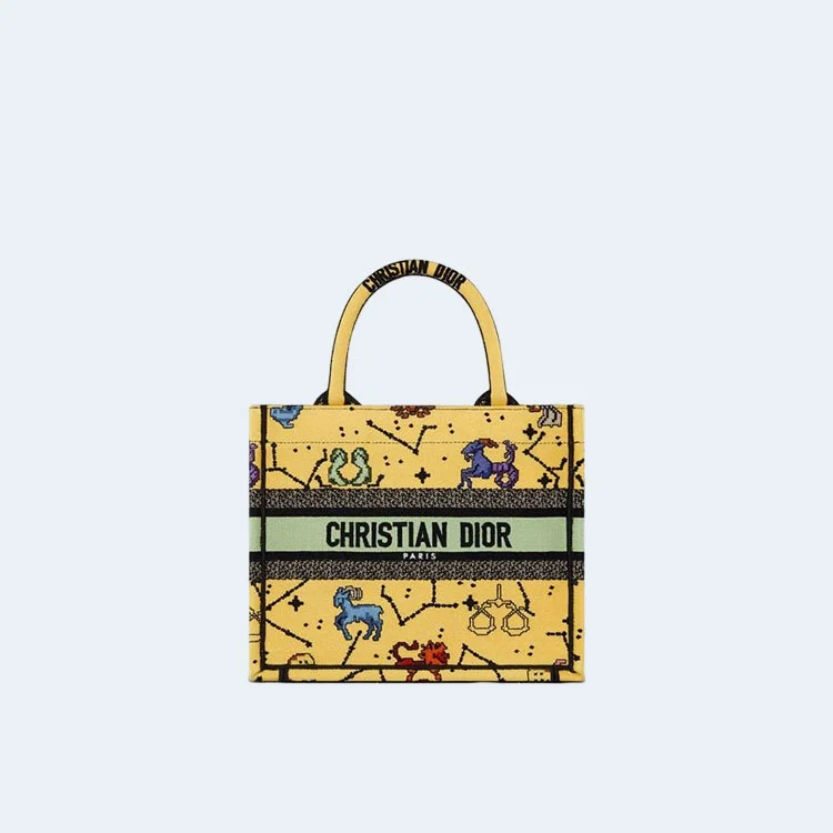 디올 픽셀 조디악 자수 북 토트 스몰 백 옐로우