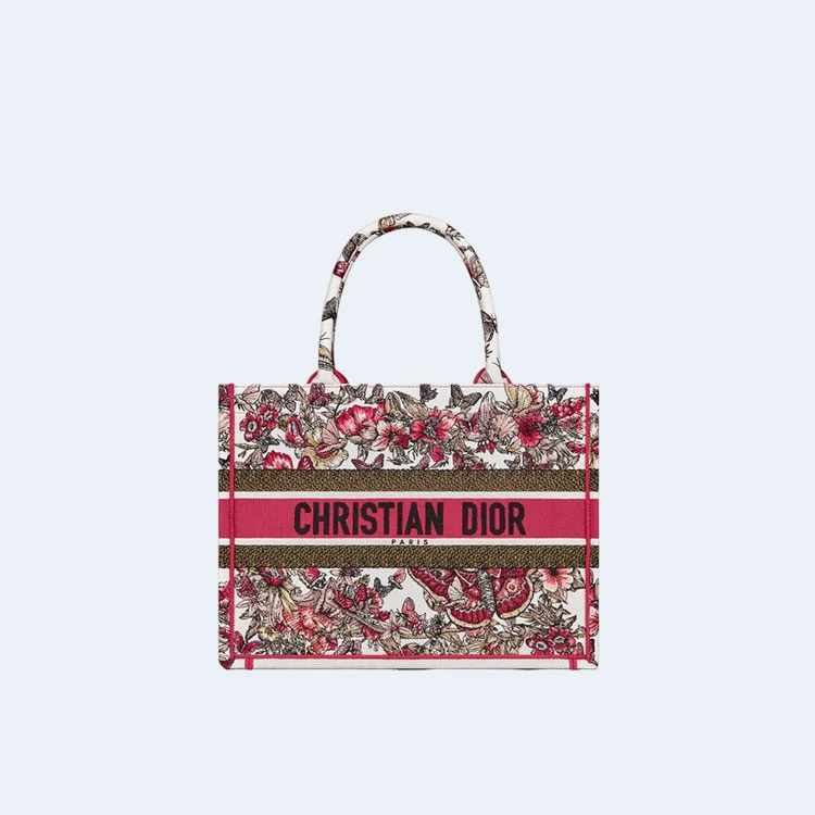 디올 멀티컬러 나비 자수 북 토트 미디움 백