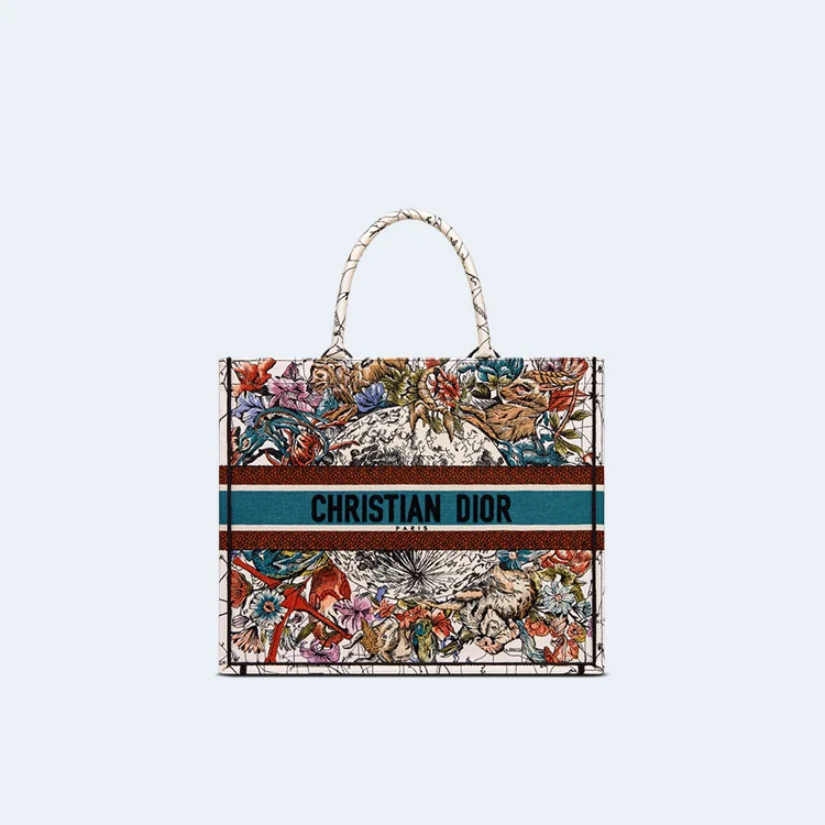 디올 멀티컬러 별자리 자수 북 토트 미디움 백