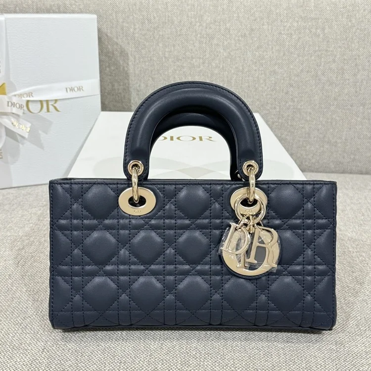 디올 레이디 D-JOY 미디움 백 네이비