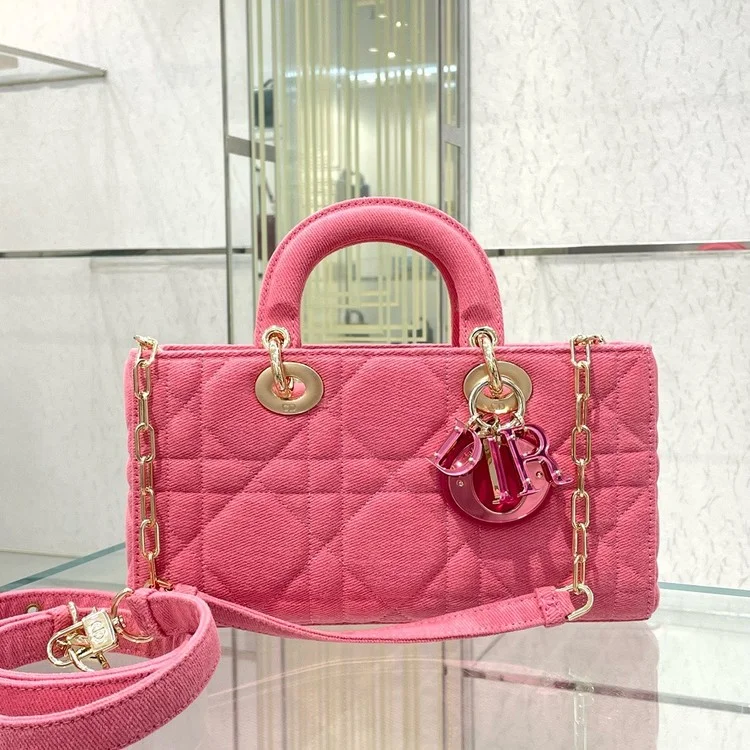 디올 레이디 D-JOY 미디움 백 데님 핑크