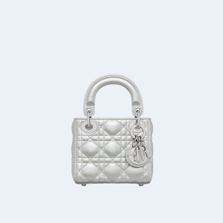 디올 레이디 마이크로 핸드백 실버