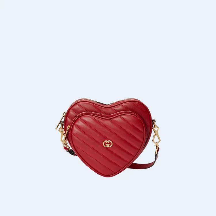 구찌 인터로킹 G 미니 하트 숄더백 레드