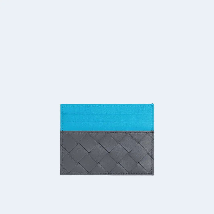 보테가 베네타 인트레치아토 투톤 카드 케이스 그레이블루