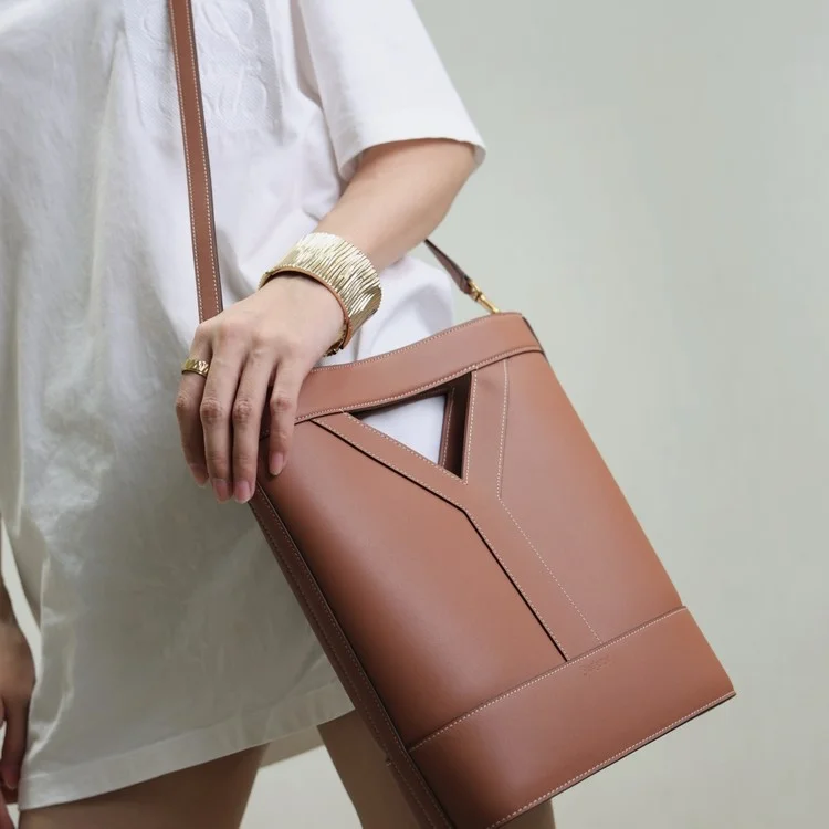 생로랑 Y 스몰 버킷 레더 브릭 808224