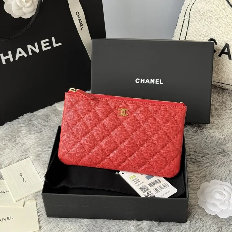 샤넬  캐비어 클래식 샴페인 골드 파우치 AP1071