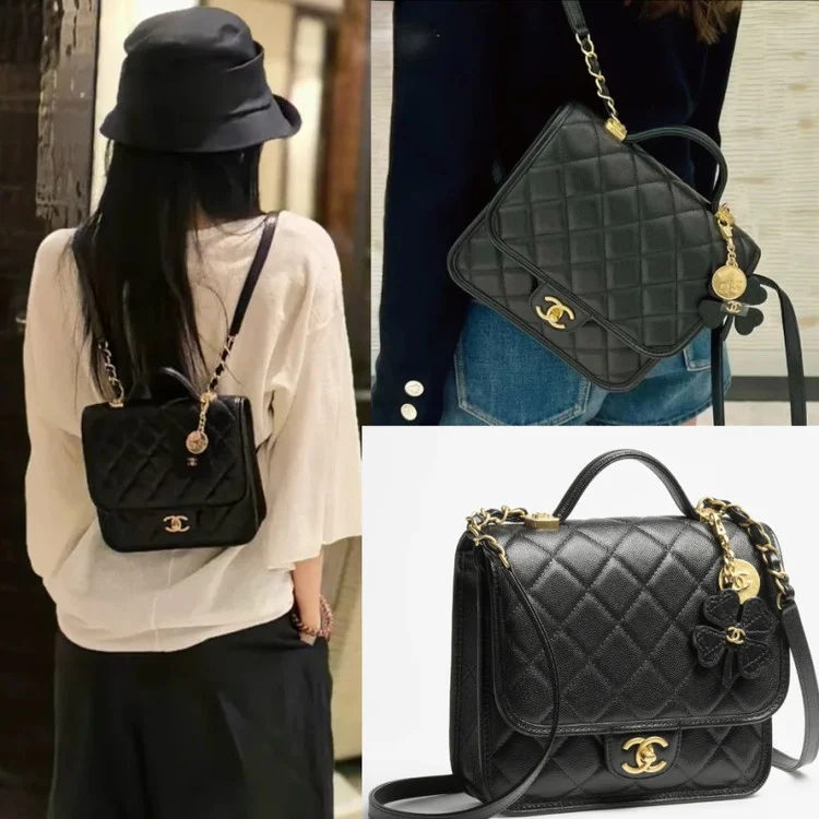 샤넬 25A 탑핸들 백팩 클로버 참 장식 AS5715