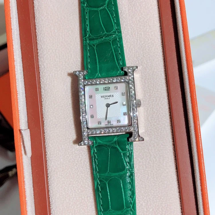 에르메스 여성 시계 에이치아워 은장 다이야 그린